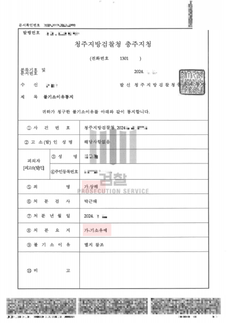 검찰은 변호인 의견서를 토대로 사건을 다시 검토했습니다. 피의자가 동종 범죄 전력이 없다는 점, 단순한 다툼의 연장선상에서 벌어진 일이라는 점, 피해자 진술만으로는 상해 발생과 인과관계를 단정하기 어렵다는 점이 인정되었습니다. 수사기관은 결국 피의자의 행위가 법률적으로 중대한 상해 범죄로 확정되기에는 증거가 부족하다고 보았습니다.