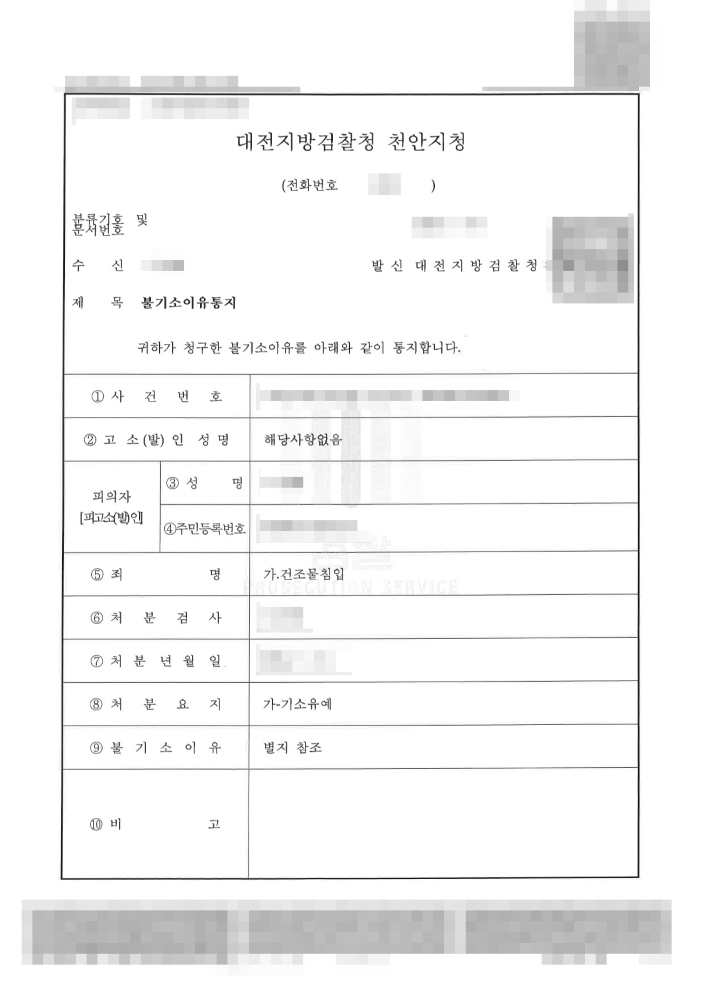 마지막으로, 인천건조물침입죄변호사는 변호인 의견서를 통해 A씨가 재범을 저지를 위험성이 낮고, 사건으로 인한 실질적 피해가 크지 않다는 점을 강조하며 기소유예 처분을 내려줄 것을 강력하게 주장했습니다.