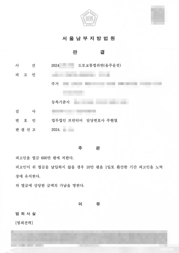 이러한 여수음주운전변호사가 주장한 양형 조건들을 종합적으로 고려한 결과, 재판부는 피고인에게 벌금 600만 원을 선고했습니다. 만약 벌금을 납입하지 않을 경우 10만 원을 1일로 환산하여 노역장에 유치한다는 내용도 함께 명했습니다.