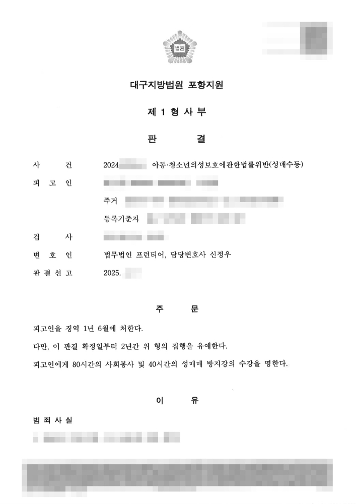이번 사건은 단순히 성매매를 넘어, 사회적 보호가 절실한 아동·청소년을 대상으로 한 중대한 범죄입니다. 피고인은 법정에서 자신의 범행을 모두 인정하며 진심으로 반성하는 태도를 보였습니다. 하지만 범죄의 특성상 그 불법성과 비난 가능성이 매우 높아, 법원은 피고인에게 실형을 선고할 수 있는 상황이었습니다. 특히 아동·청소년 관련 범죄에 대해 사회적 비판 여론이 높아지면서 법원도 엄중한 판결을 내리는 추세이므로, 피고인에게 내려질 형량에 관심이 쏠렸습니다.