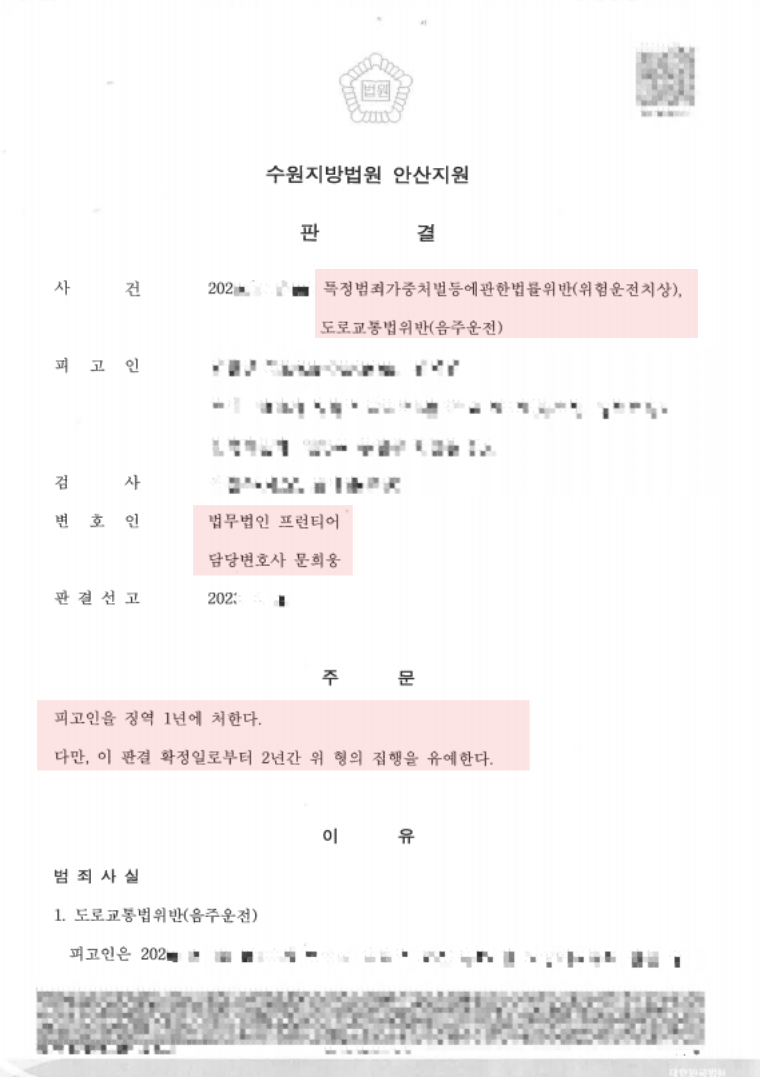 게다가 과거 음주운전 전력까지 있었기에 자칫하면 실형이 불가피한 상황이었습니다.
