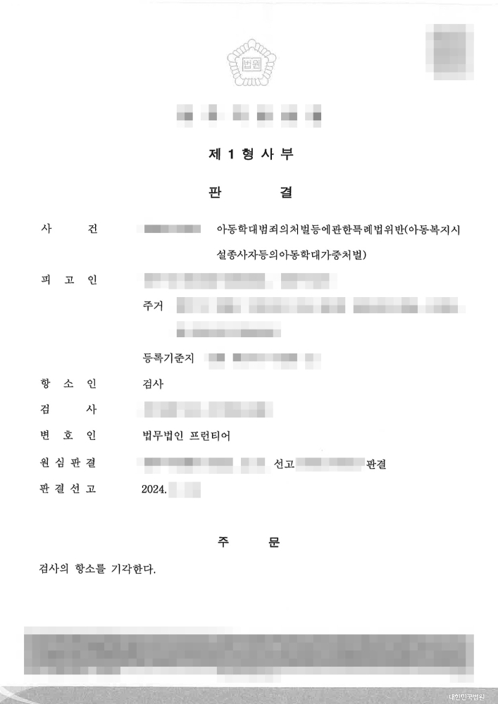 여수아동학대변호사가 조력하여 검사의 항소를 기각시킨 이 사건은 아동학대범죄의 처벌 등에 관한 특례법 위반(아동복지시설 종사자 등의 아동학대 가중처벌) 사건입니다. 피고인은 원심에서 공소사실 전부 무죄 판결을 받았고 , 검사가 이에 불복하여 항소하였습니다. 항소심에서는 검사의 항소가 이유 없다며 기각되었습니다.