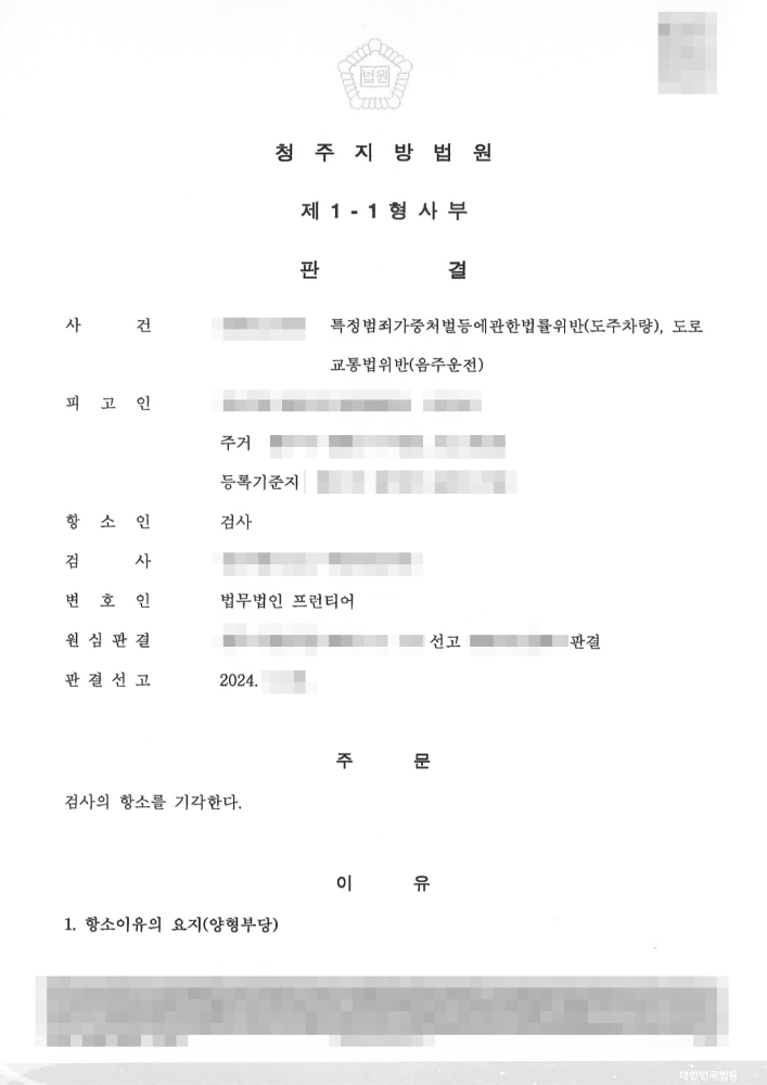 법원은 검사의 항소를 최종적으로 기각했습니다. 이는 경주교통사고변호사의 체계적이고 설득력 있는 변론 활동이 법원에서 인정받아, 피고인이 1심에서 선고받았던 징역 1년 6월에 집행유예 3년, 그리고 40시간 준법운전강의 수강명령이라는 선처를 확정하는 성공적인 결과였습니다.