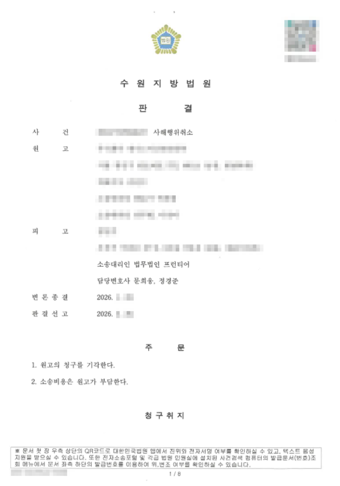 인천사해행위취소변호사로서 법무법인 프런티어는 채권자로부터 사해행위취소 소송을 제기당한 의뢰인 A씨의 사건을 수임하여 성공적으로 승소 판결을 이끌어낸 바 있습니다.