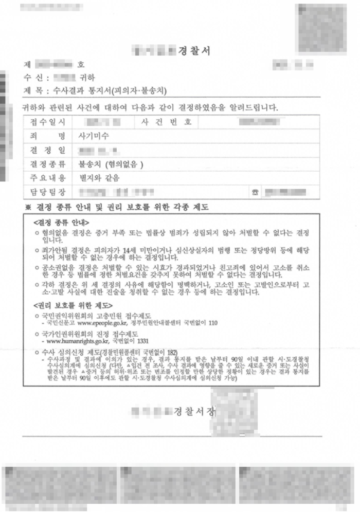 수사기관은 면밀한 수사 끝에 의뢰인에 대해 혐의없음을 이유로 불송치 결정을 내렸습니다. 혐의없음 결정은 증거 부족 또는 법률상 범죄가 성립되지 않아 처벌할 수 없다는 결정으로, 의뢰인의 무고함이 공식적으로 인정된 것입니다.
