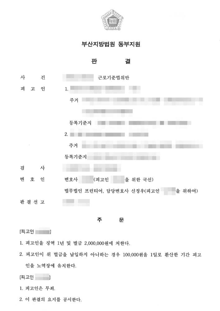 경주변호사추천의 조력으로 무죄를 선고받은 이 사건은 근로기준법위반 사건입니다.