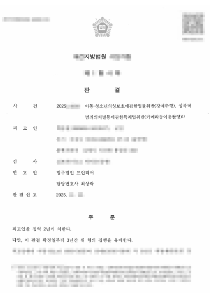 천안성범죄변호사의 적극적인 변호 활동 결과, 법원은 피고인에게 징역 2년에 집행유예 3년을 선고하였습니다. 이는 검사가 구형한 징역 2~4.5년에 비해 상당히 감경된 결과였습니다.