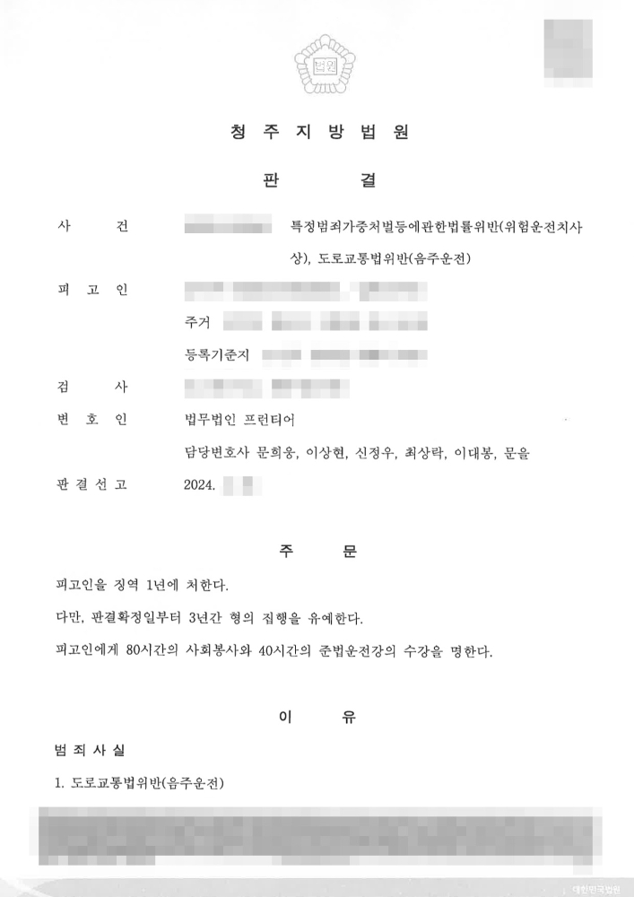 위험운전치사상변호사의 조력으로 집행유예를 선고받은 이 사건은 피고인이 만취 상태에서 운전하다가 사람을 다치게 한 중대한 음주 교통사고입니다.