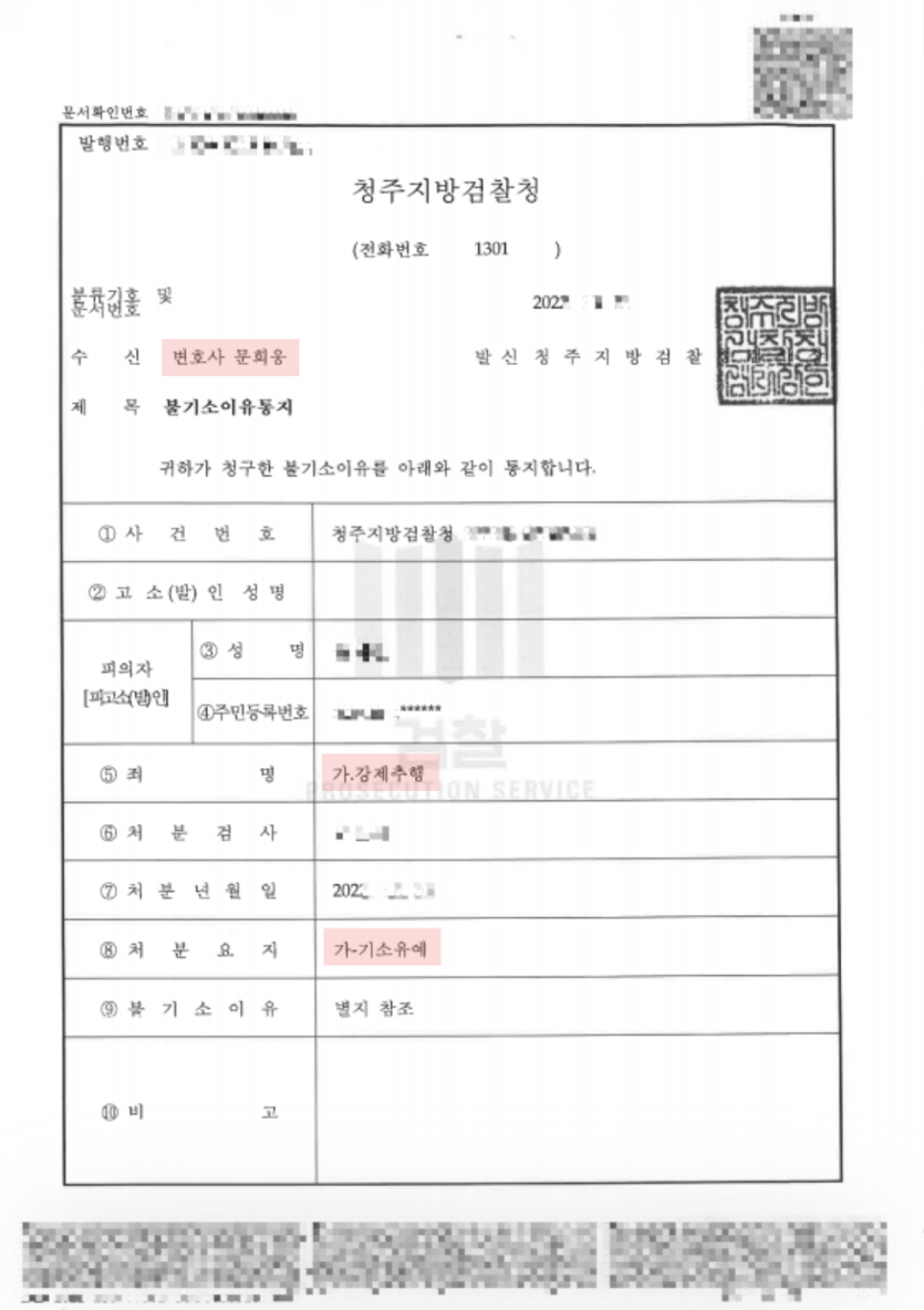 최종적으로 검찰은 의뢰인에 대해 기소유예 처분을 내렸습니다. 이는 범죄 혐의는 인정되지만 여러 사정을 고려했을 때 굳이 재판에 회부할 필요가 없다고 판단한 것입니다. 기소유예는 전과로 남지 않고, 일정 기간만 잘 지내면 사건이 종결되는 효과가 있어 피의자에게는 사실상 최선의 결과라 할 수 있습니다.