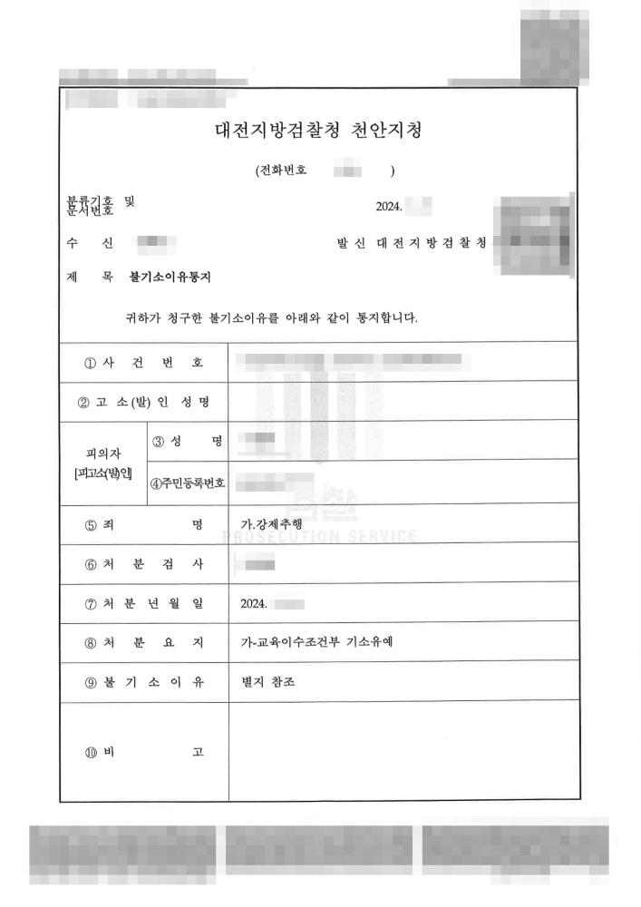 기소유예는 피의사실은 인정되지만, 여러 정황을 고려했을 때 검사가 재량으로 기소를 하지 않고 사건을 종결하는 처분입니다. 이는 실형은 물론이고 벌금형과 같은 전과 기록도 남지 않기 때문에, 사실상 무죄와 같은 효과를 가집니다. 특히 성범죄라는 중대한 혐의에 대해 불기소 처분인 기소유예를 받은 것은 매우 이례적이고 성공적인 결과라고 할 수 있습니다. 이와 함께 피의자는 재범 방지를 위한 성폭력 재범방지 교육 이수를 조건으로 기소유예 처분을 받게 되었습니다.