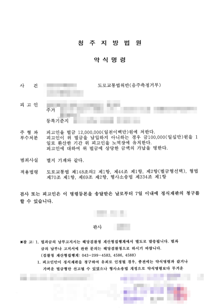 당진음주운전측정거부변호사의 조력을 통해 음주측정거부 혐의에서 벌금형을 선고받은 사건입니다.