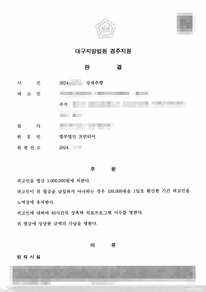 아산강제추행변호사의 조력을 통해 벌금형을 선고받은 본 사건은 피고인의 강제추행 범행을 다룹니다.
