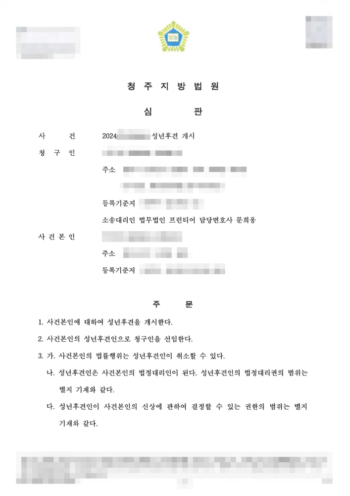 [화성성년후견인변호사 조력 결과]