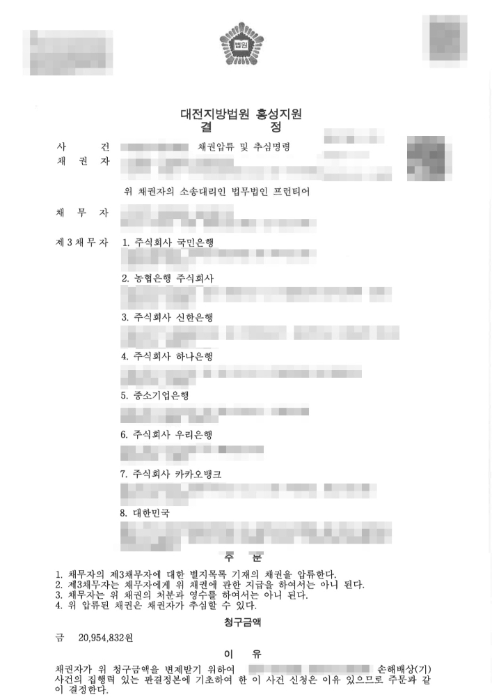 송파채권추심변호사의 조력이 성공의 열쇠였던 본 사건은 채권자가 채무자를 상대로 법원에 채권압류 및 추심명령을 신청하여 손해배상금 20,954,832원을 전액 인용받은 사건입니다.