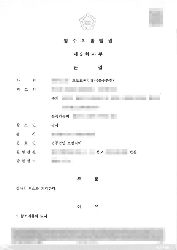 인천도로교통법위반변호사가 조력한 도로교통법위반(음주운전) 사건의 결과는 검사의 항소 기각입니다. 법원은 검사의 항소를 이유 없다고 판단하고, 형사소송법 제364조 제4항에 의하여 이를 기각하기로 판결했습니다. 이는 원심에서 선고된 피고인에 대한 벌금 1,000만 원의 형이 항소심에서도 그대로 유지되었음을 의미하며, 인천도로교통법위반변호사의 변론이 성공적이었음을 보여주는 결과입니다.