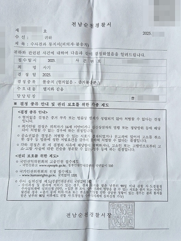 순천사기죄변호사의 전문적인 조력은 결국 의뢰인에게 가장 유리한 결과인 불송치(혐의없음 - 증거불충분) 결정을 이끌어냈습니다. 의뢰인에 대한 수사를 종결하면서 내린 불송치 결정은, 의뢰인의 행위에 형사상 사기죄를 인정할 만한 증거가 부족하거나 혐의가 없다고 판단했음을 의미합니다. 이는 의뢰인이 고소인에게 투자금을 받을 당시부터 돈을 갚을 의사나 능력이 없었다는 '기망의 고의'가 입증되지 않았으며, 단순히 사업 실패로 인한 채무 불이행일 뿐 형사 처벌의 대상이 아님을 수사기관이 공식적으로 인정한 것입니다.