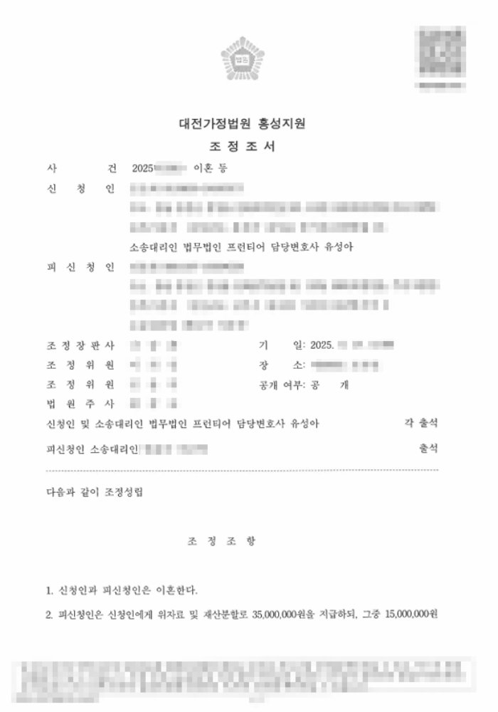 천안이혼변호사 - 천안이혼전문변호사의 조정 사례