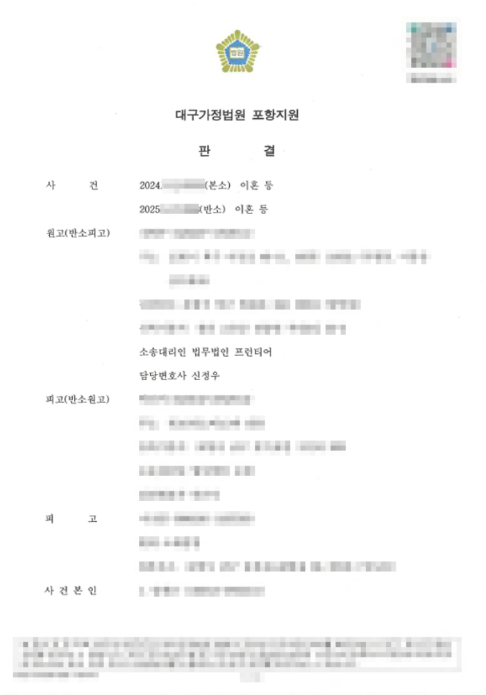 이혼소송은 감정적으로 격화되기 쉬운 특성상, 포항이혼전문변호사의 냉철한 법률 판단과 체계적인 소송 전략이 사건 전반을 안정적으로 이끄는 데 핵심적인 역할을 하였습니다.