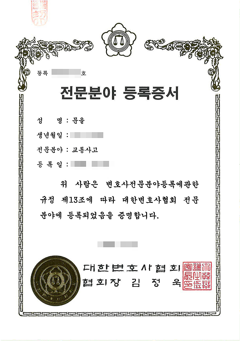 · 대한변호사협회 정식등록 교통사고전문변호사 (전국0.3%)