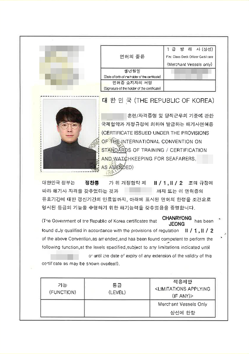 · 해양수산부 해기사 1급 항해사(상선)